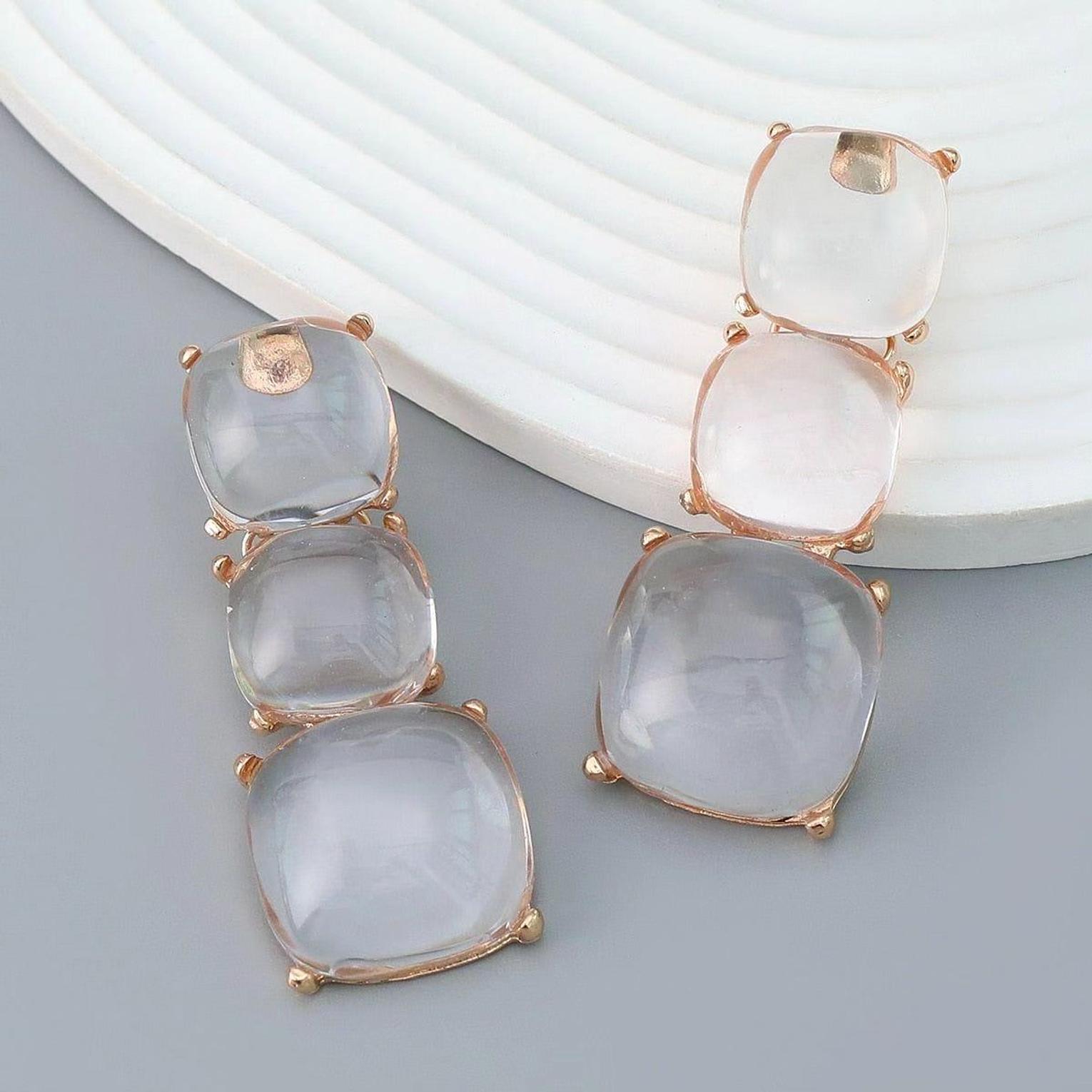 clear elements on gold earrings create a captivating contrast that captures attention and exudes sophistication. The sparkling clarity of the clear gemstones against the rich backdrop of gold creates a striking and elegant look that is perfect for any occasion, from everyday wear to special events. These earrings are versatile, timeless, and sure to be cherished for years to come.