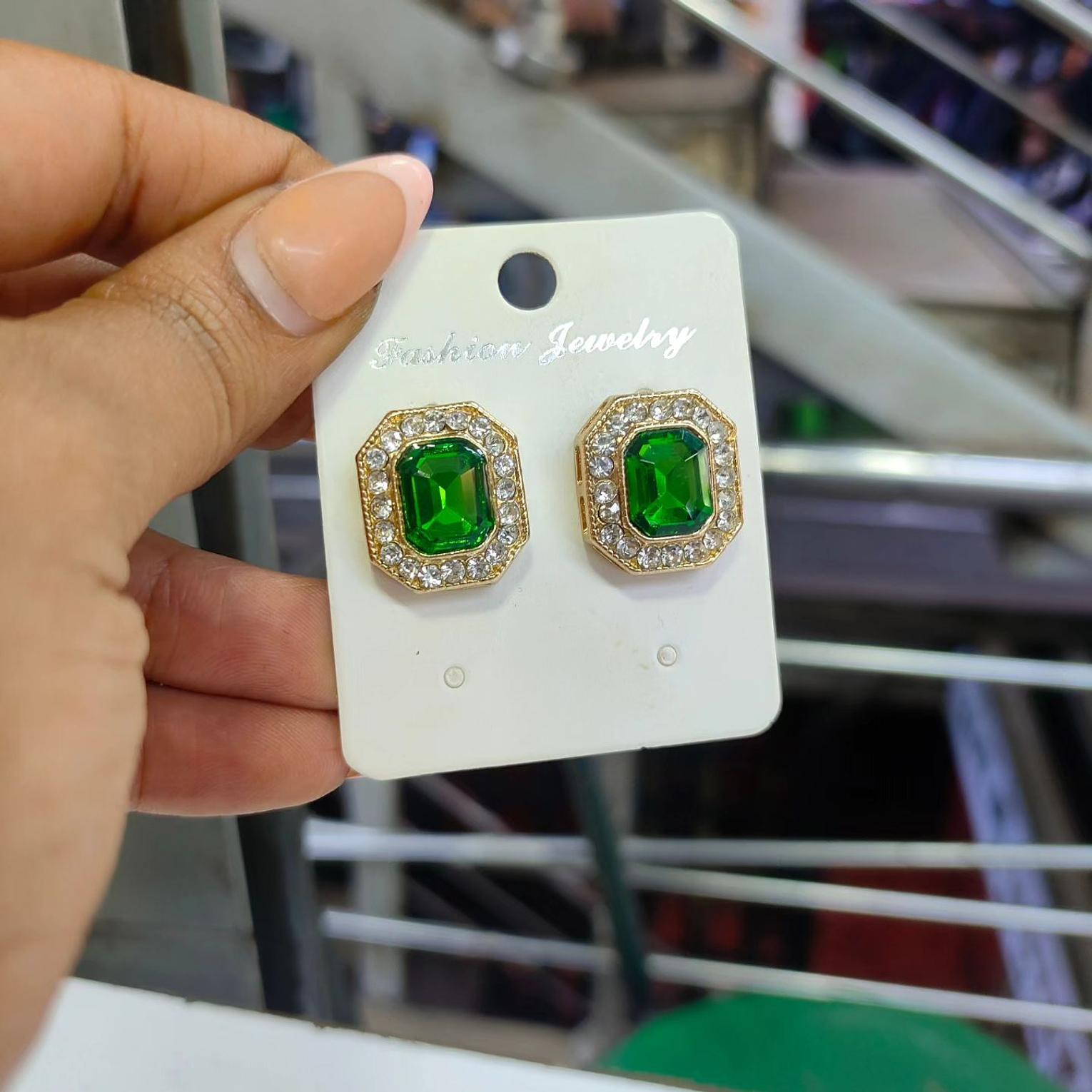 Overall, Green stones and crystals on gold earrings describe a captivating combination of elements that result in a pair of earrings that are both visually striking and inherently elegant. Whether worn for special occasions or as everyday accessories, these earrings are sure to make a statement and draw admiration.