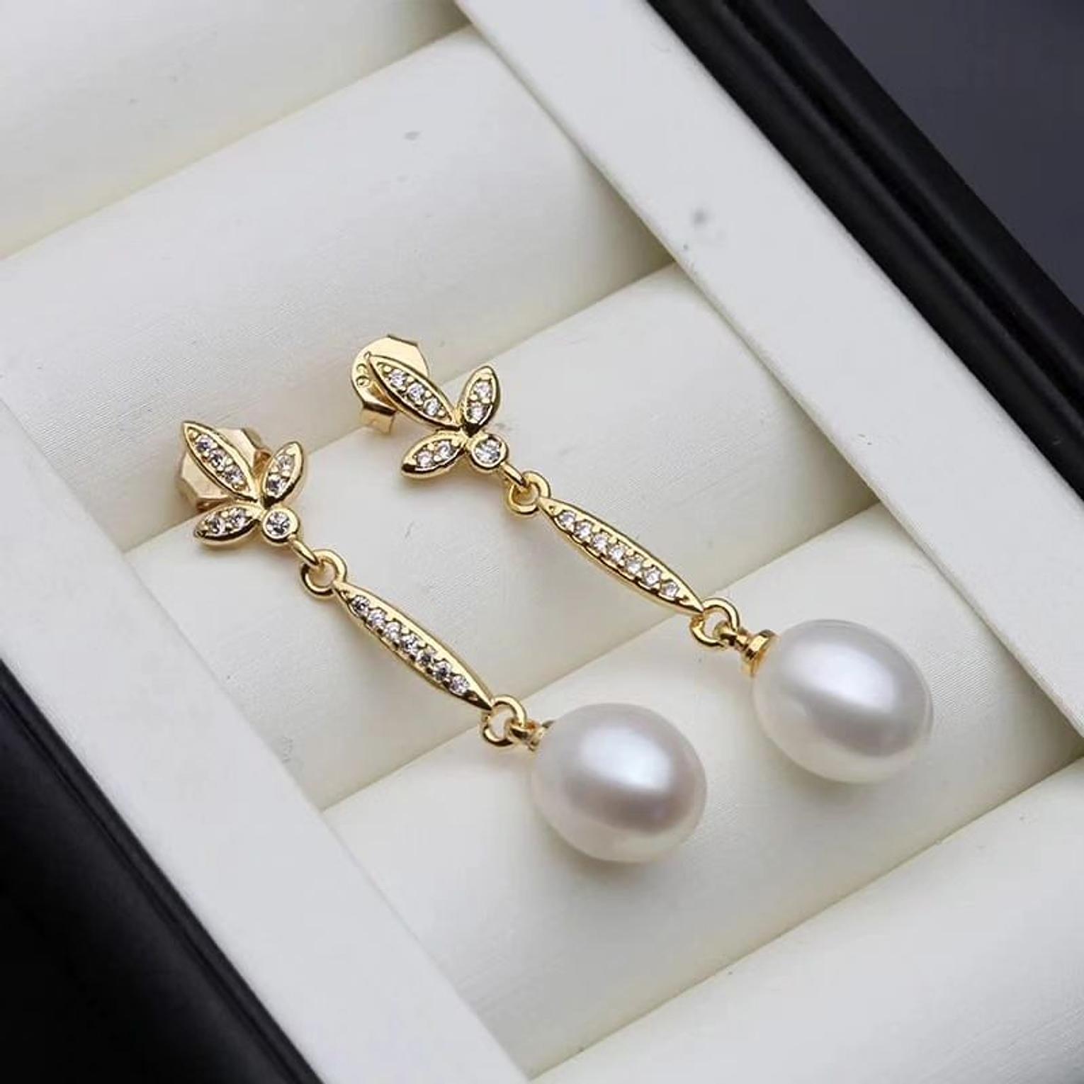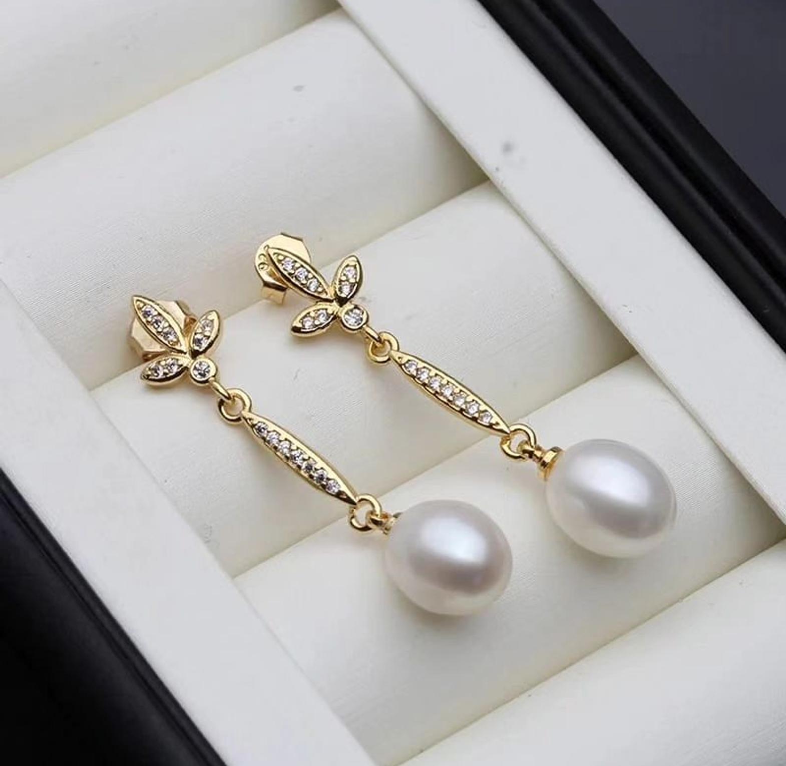 Whites on gold earrings