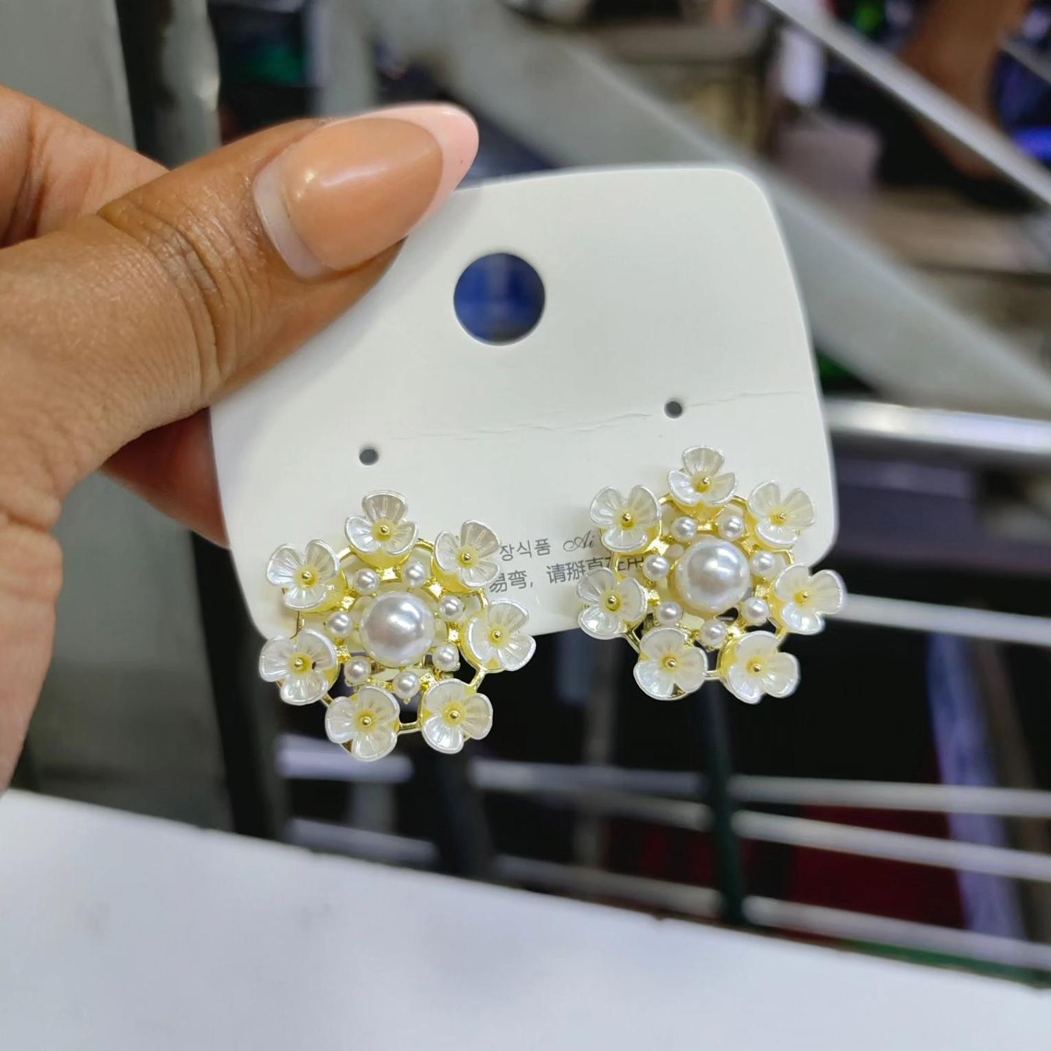 The white flowers on golden earrings create a harmonious and captivating contrast. The floral motifs infuse the earrings with a sense of femininity and romance, while the golden base adds a touch of glamour and luxury. These earrings are perfect for adding a touch of elegance to both casual and formal outfits, making them a versatile and cherished accessory for any occasion.